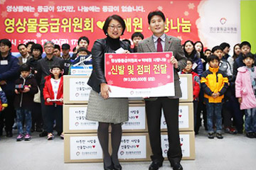 영상물등급위원회는 사회공헌 활동을 통해 소외 취약계층에 사랑나눔을 실천하고 공공기관으로서 지역 융화와 나눔 경영의 롤모델이 되고자 지속적인 사회공헌 활동을 이어가고 있습니다.